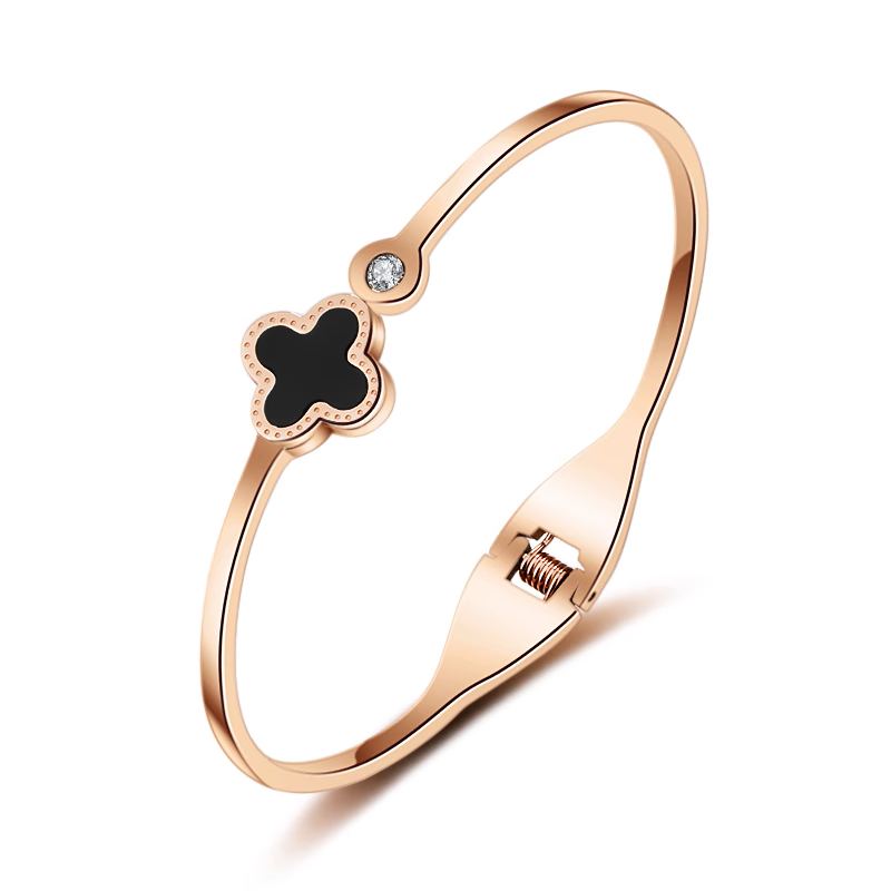 Bracelet trèfle doré rouge avec zircons en acier inoxydable